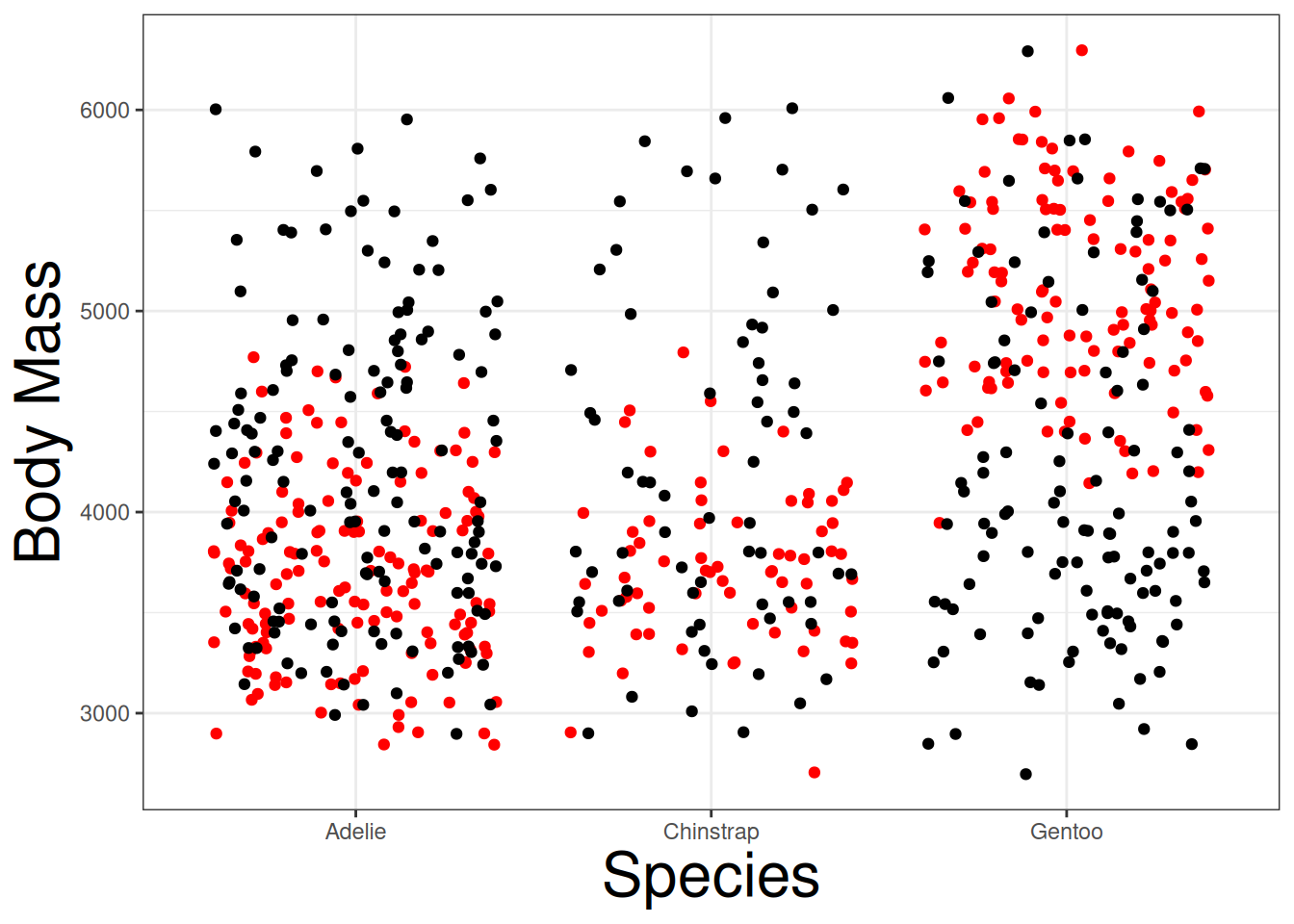 geom_jitter(aes(species, shuffle(body_mass_g)))